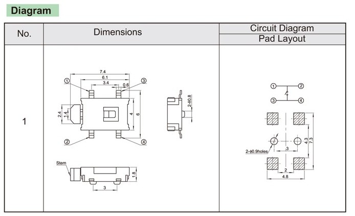 7.4×6Light touch switch, light touch buttons, patch type light touch switch, pin type light touch switch, miniature light touch switch,