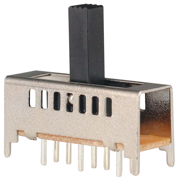 Slide Switch Main data Rating:DC 50V 0.3A~1A ContactResistance:< 100 mΩ InsulationResistance:≥ 100 MΩ Withstand Voltage:500V AC for 1 minute Operating Force:180~500gf Life cycles:10000次 Operationg Temperature:-16℃to+60℃ Storage Temperature:-40℃to+85℃ Complies with:RoHs&Reach