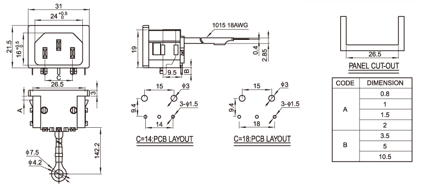 Model number:DB-14-7P(strip line): Key words: the end socket of the product, the end power socket, the pin socket, AC power socket and socket. Directions: small home appliance character power supply;Main engine box socket;Power socket of the battery car;Electrical socket 31*21.5 feet inches: Current voltage: 10a 250V.