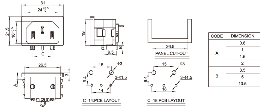 Model number:DB-14-7P-S55: Key words: the end socket of the product, the end power socket, the pin socket, AC power socket and socket. Directions: small home appliance character power supply;Main engine box socket;Power socket of the battery car;Electrical socket 31*21.5 feet inches: Current voltage: 10a 250V.
