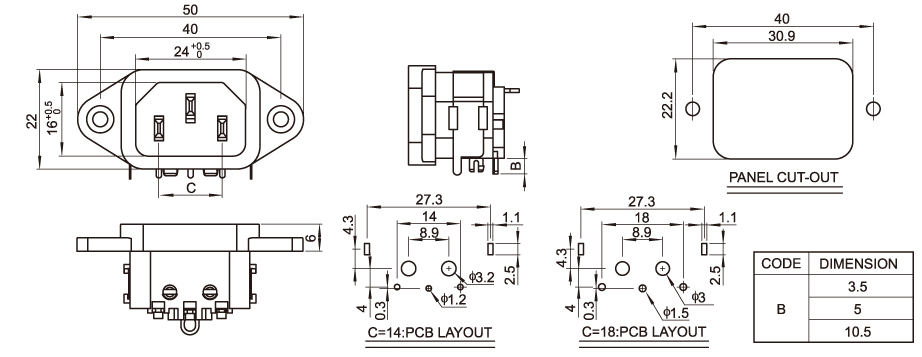 Model number:DB-14-10P-S55(T) : Key words: the end socket of the product, the end power socket, the pin socket, AC power socket and socket. Directions: small home appliance character power supply;Main engine box socket;Power socket of the battery car;Electrical socket 50*22 feet inches: Current voltage: 10a 250V.