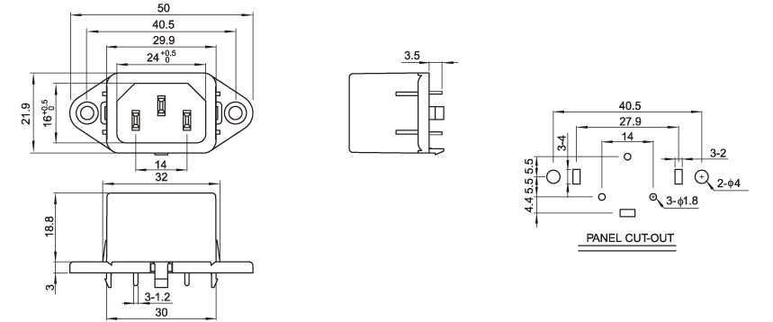 Model number: DB-14-13P-MM : Key words: the end socket of the product, the end power socket, the pin socket, AC power socket and socket. Directions: small home appliance character power supply;Main engine box socket;Power socket of the battery car;Electrical socket 50*21.9 feet inches: Current voltage: 10a 250V.