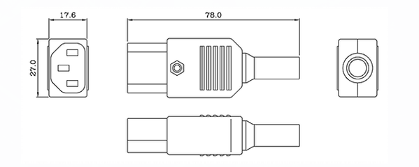 Standard: IEC 60320 C13 Rating: 10A 250V AC Insulation Resistance: 100MΩ 500V DC/1 minute Dielectric Strength: 2000V AC/1 minute Housing Material: Thermoplastic 94V-2~V-0