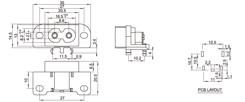Model number: DB-8-13P20: Key words: octagon socket: octagon socket;Adapter power socket Power adapter: laptop power supply;Medical device power supply;The charger. Or: 35 * 14.5 Current voltage: 2.5a 250V