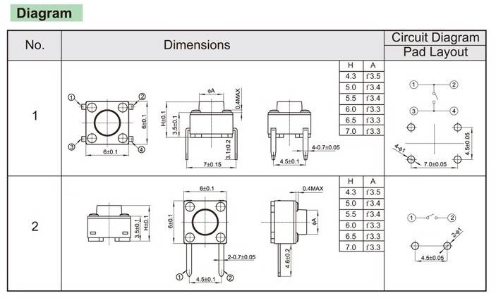 6×6 Light touch switch, light touch buttons, patch type light touch switch, pin type light touch switch, miniature light touch switch