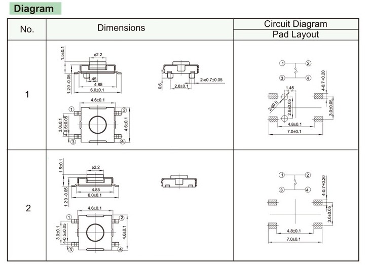 4.5×4.5×1.5 Light touch switch, light touch buttons, patch type light touch switch, pin type light touch switch, miniature light touch switch,