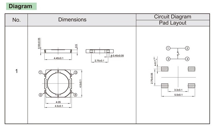 4.5×4.8×0.55 Light touch switch, light touch buttons, patch type light touch switch, pin type light touch switch, miniature light touch switch,
