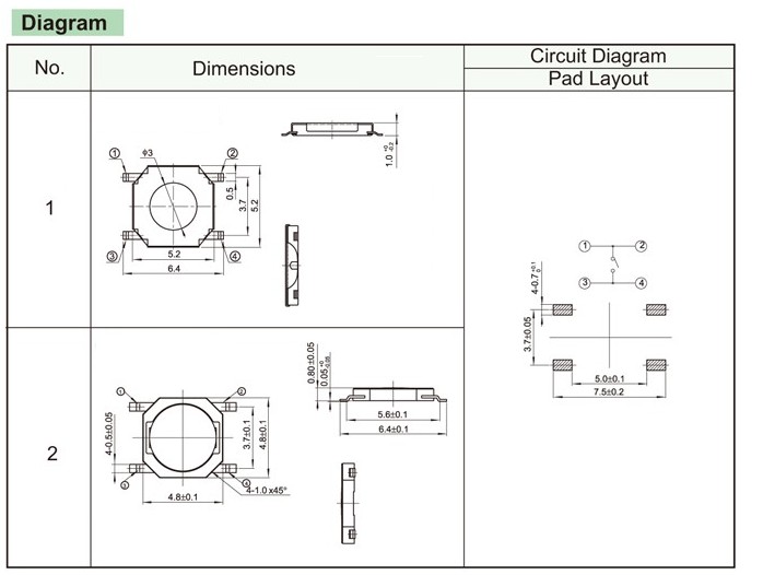 4×4×0.8 Light touch switch, light touch buttons, patch type light touch switch, pin type light touch switch, miniature light touch switch