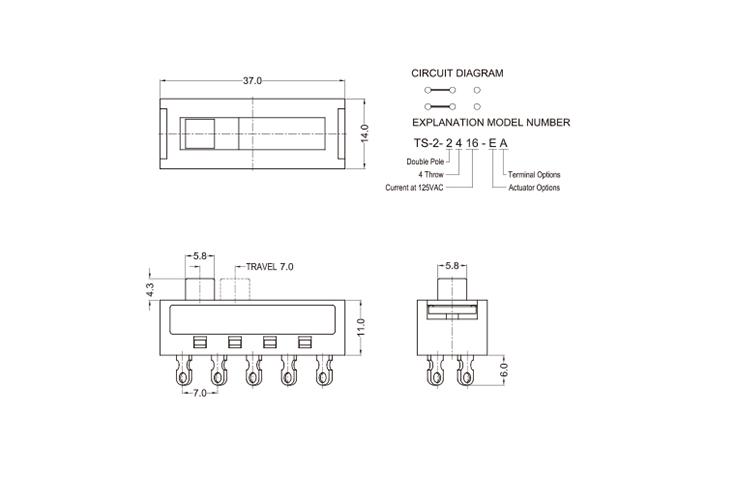 工作溫度范圍Operating temperature range:-30℃ to+85℃   額定電流Rating:3A 250V AC   絕緣電阻Insulation resistance: 100MΩ min.500V DC 接觸電阻Contact resistance: 30m Ω max.   操作力度Operating fore:250±100gf   壽命Life time:10000 cycles(依產(chǎn)品而定)