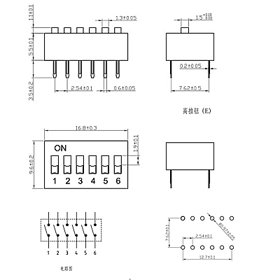 腳距為2.54mm,采用頂撥直插式(DIP)、平型,屬于兩態。執行機構的力度在各系列中最大至800gF,外殼、執行機構均采用PBT,UL94V-0材質。觸點及端點均鍍金,可靠性強。工作溫度在-40至85度,適于工業級。
