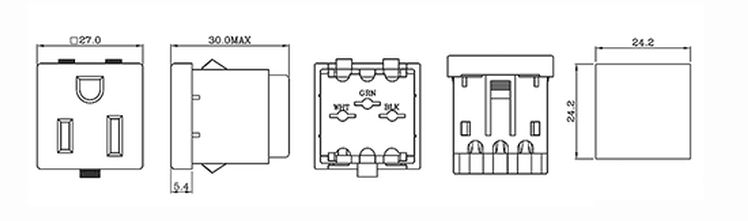 Standard: US RECEPTACLE Rating:15A 125V AC Insulation Resistance: 100MΩ 500V DC/1 minute Dielectric Strength: 2000V AC/1 minute Housing Material: Thermoplastic 94V-2~V-0