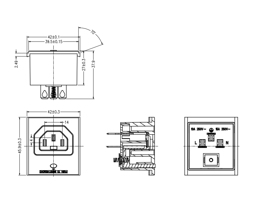 型 號:L-BD-7(C13)滑入式 用 途:桌面C13模塊、PDU機柜C13模塊 尺 寸:45.9*42 功能:10A 250V