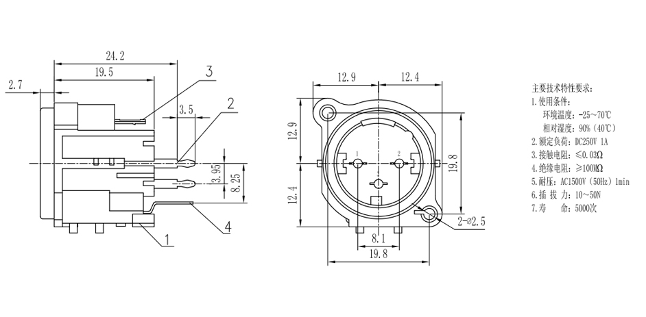 壽命:3000次 / 使用溫度:-20℃~80℃ / 型號:CT3-05HM / 黑色
