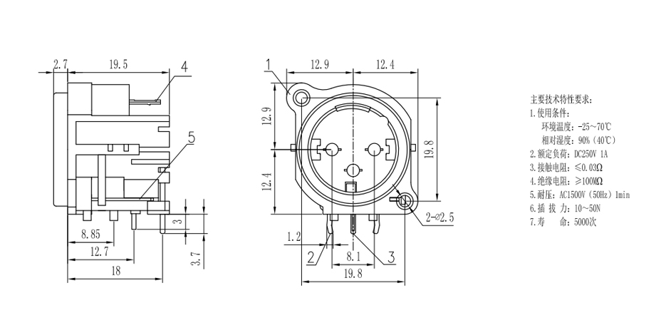 壽命:3000次 / 使用溫度:-20℃~80℃ / 型號:CT3-05M / 黑色