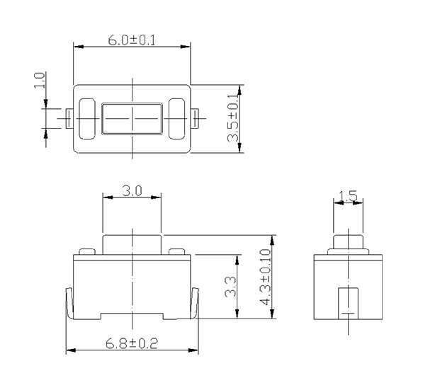 尺寸: 6.0X3.5mm 產(chǎn)品分類: 輕觸開關(guān) - B系列 / 3x6一型二型 應(yīng)用 ※ 用于各種電子設(shè)備操作 ※ 音頻設(shè)備,辦公設(shè)備,通訊設(shè)備 ※ 測(cè)量?jī)x器,電視機(jī),電視錄像機(jī)等 特點(diǎn) ※ 回流可焊 ※ 用16mm寬的編帶包裝