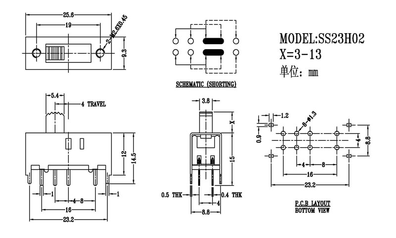 撥動開關(guān)主要技術(shù)參數(shù): 使用功率/額定值:DC 50V 0.3A~1A 觸點電阻:< 100 mΩ 絕緣電阻:≥ 100 MΩ 耐壓:500V AC for 1 minute 撥動力:180~500gf 使用壽命:10000次 操作溫度:-16℃to+60℃ 儲存溫度:-40℃to+85℃ 符合標(biāo)準(zhǔn):RoHs&Reach