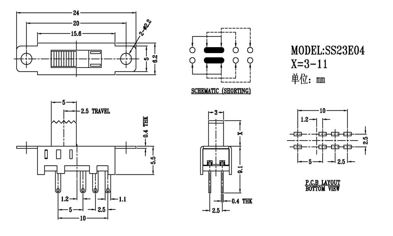 正撥撥動開關主要技術參數 使用功率/額定值:DC 50V 0.3A~1A 觸點電阻:< 100 mΩ 絕緣電阻:≥ 100 MΩ 耐壓:500V AC for 1 minute 撥動力:180~500gf 使用壽命:10000次 操作溫度:-16℃to+60℃ 儲存溫度:-40℃to+85℃ 符合標準:RoHs&Reach