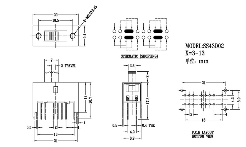 正撥撥動(dòng)開(kāi)關(guān)主要技術(shù)參數(shù) 使用功率/額定值:DC 50V 0.3A~1A 觸點(diǎn)電阻:< 100 mΩ 絕緣電阻:≥ 100 MΩ 耐壓:500V AC for 1 minute 撥動(dòng)力:180~500gf 使用壽命:10000次 操作溫度:-16℃to+60℃ 儲(chǔ)存溫度:-40℃to+85℃ 符合標(biāo)準(zhǔn):RoHs&Reach