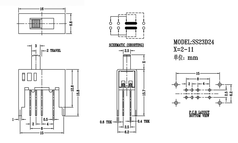 正撥撥動開關(guān)主要技術(shù)參數(shù) 使用功率/額定值:DC 50V 0.3A~1A 觸點(diǎn)電阻:< 100 mΩ 絕緣電阻:≥ 100 MΩ 耐壓:500V AC for 1 minute 撥動力:180~500gf 使用壽命:10000次 操作溫度:-16℃to+60℃ 儲存溫度:-40℃to+85℃ 符合標(biāo)準(zhǔn):RoHs&Reach
