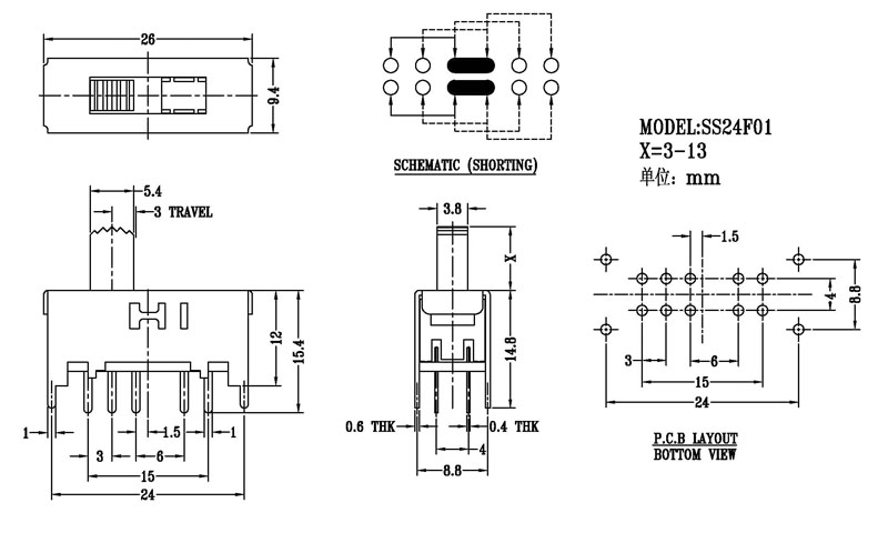 正撥撥動開關主要技術參數 使用功率/額定值:DC 50V 0.3A~1A 觸點電阻:< 100 mΩ 絕緣電阻:≥ 100 MΩ 耐壓:500V AC for 1 minute 撥動力:180~500gf 使用壽命:10000次 操作溫度:-16℃to+60℃ 儲存溫度:-40℃to+85℃ 符合標準:RoHs&Reach