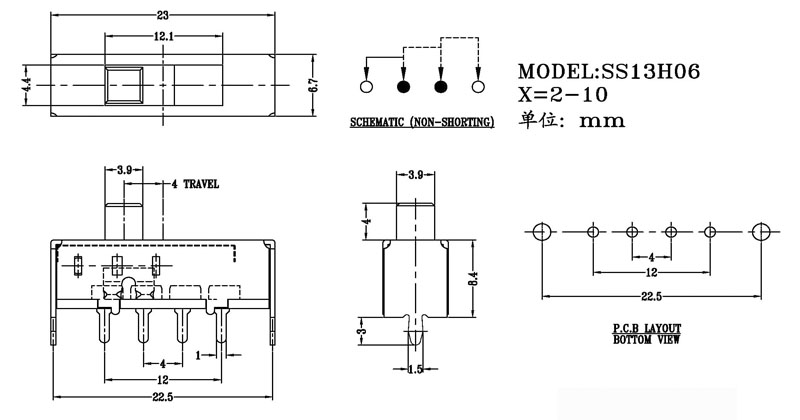 正撥撥動(dòng)開關(guān)主要技術(shù)參數(shù) 使用功率/額定值:DC 50V 0.3A~1A 觸點(diǎn)電阻:< 100 mΩ 絕緣電阻:≥ 100 MΩ 耐壓:500V AC for 1 minute 撥動(dòng)力:180~500gf 使用壽命:10000次 操作溫度:-16℃to+60℃ 儲(chǔ)存溫度:-40℃to+85℃ 符合標(biāo)準(zhǔn):RoHs&Reach