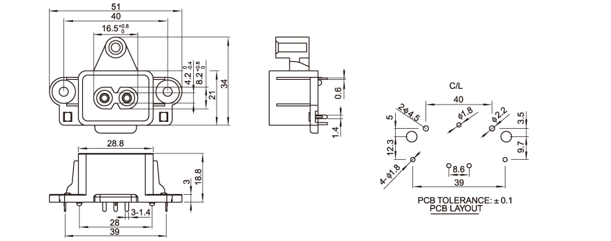 型 號:DB-8-22P29: 關健詞:八字插座:八字尾插座;適配器電源插座 用 途:電源適配器:筆記本電源;醫療器械電源;充電器; 尺 寸:51*34 電流電壓:2.5A 250V