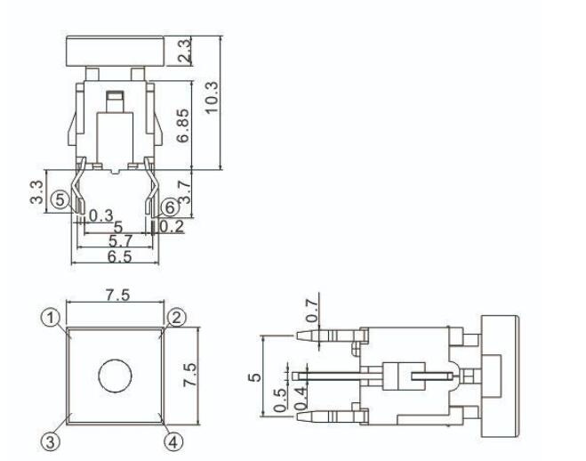特長 ◆ 可用按入式直接安裝到線路板。 ◆ 輸出端子的一部分可作為跨接引線使用,電路設計簡單。 ◆ 標準按鈕可選。
