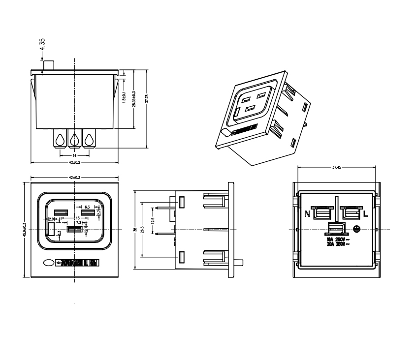 L-BD-3(C19) 卡入式插座
