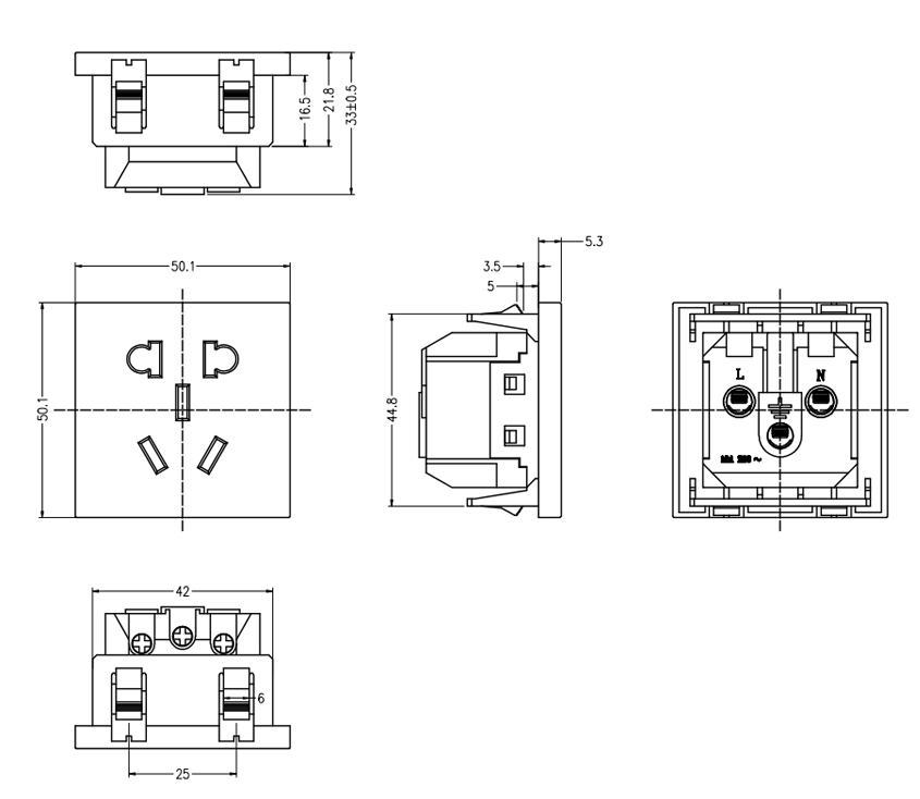 型 號:L-BD-9(國標5孔 50x50) 用 途:桌面五孔國標模塊、PDU機柜國標模塊 、五孔國標、儲能設備國標插座 尺 寸:50*50 功能:10A 250V